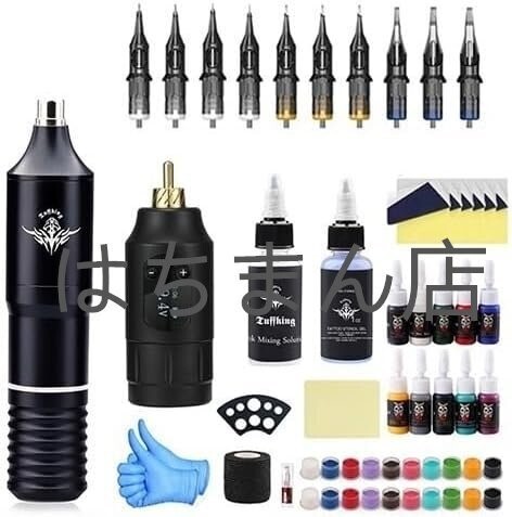 > タトゥーマシン、ワイヤレスタトゥーマシン 、タトゥーマシンセット タトゥー転写クリーム 10色のタトゥー顔料付き (Color : Black+Silver)