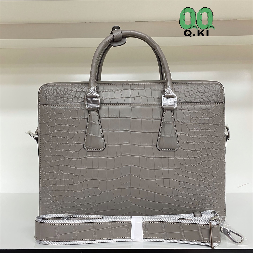 - 定価20万円超 クロコダイルレザー 本革 腹革手提げ 鞄 A4/PC対応 ワニ革 ブリーフケース メンズ ハンドバッグ グレー