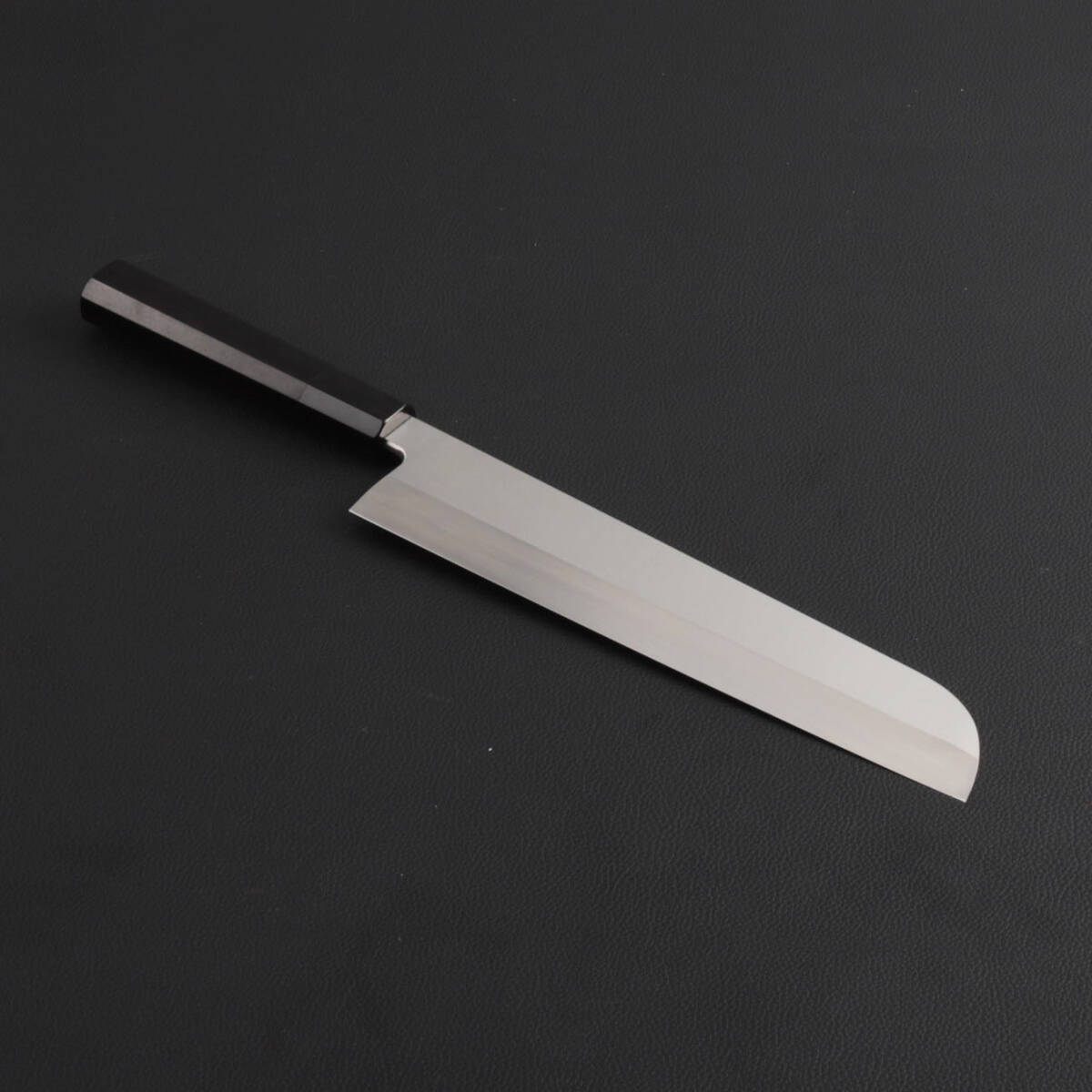 - 8834 鎌型薄刃 8寸 刃は究極の切れ味 真空焼き入れサブゼロ処理 刺身包丁 和包丁 黒檀黒水牛角八角柄