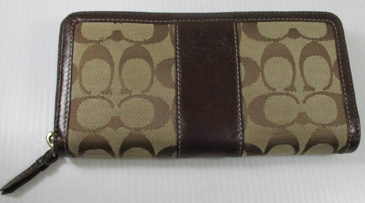 - BA-117 COACH コーチ ラウンドファスナー財布 シグネチャー柄 ブラウン系
