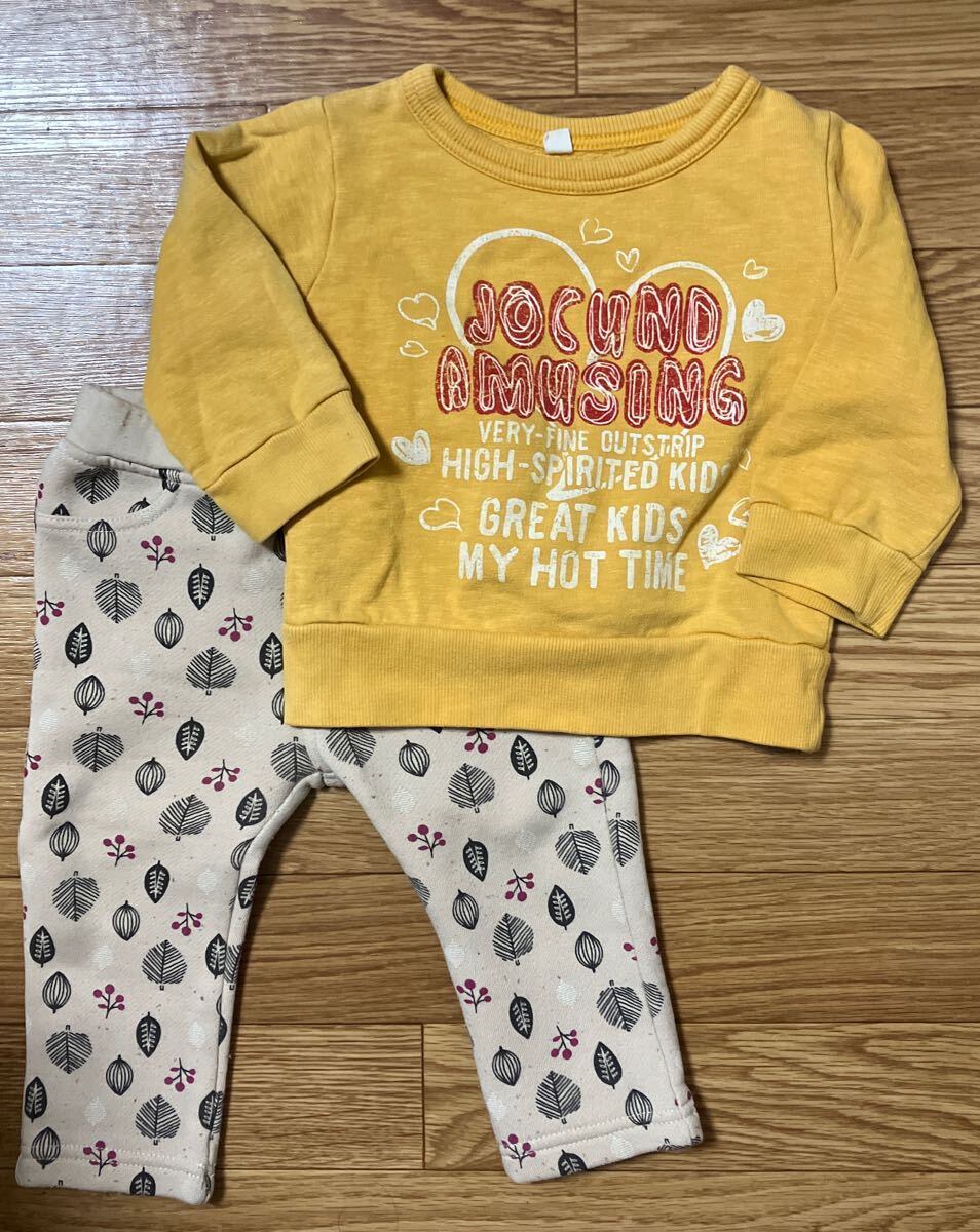 - 上下セット トレーナー ズボン 裏起毛 子ども服 80 長袖 長ズボン トップス ボトムス ウエストゴム アカチャンホンポ 西松屋 古着