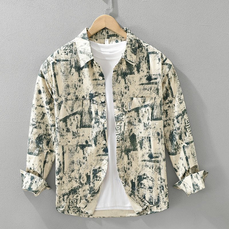 > ☆新品 長袖シャツ ウエスタンシャツ シャツジャケット 開襟シャツ メンズ 春秋服 カジュアルシャツ トップス グリーン L