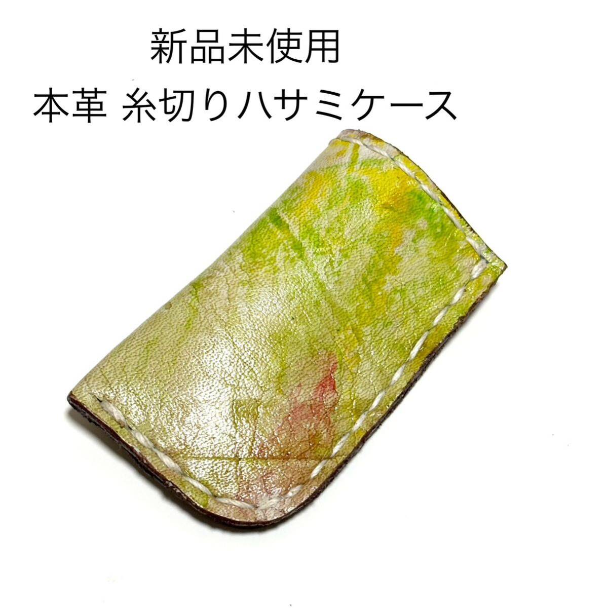 - 新品未使用 本革糸切りばさみケース マーブル柄 グリーン系 レザー製 小物入れ カバー ミニポーチ 小物ケース