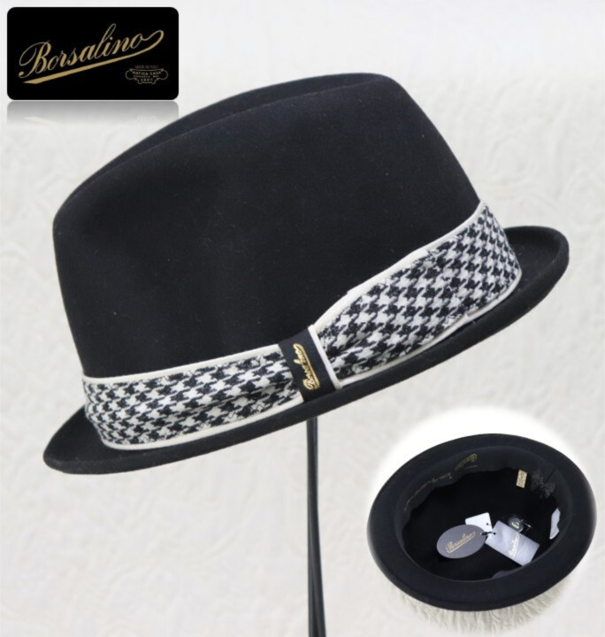 > 希少コラボ!93,500円新品タグ付き【ボルサリーノ×イタリアインディペンデント】 ラビット ファーフェルトハット 黒 59 v5959