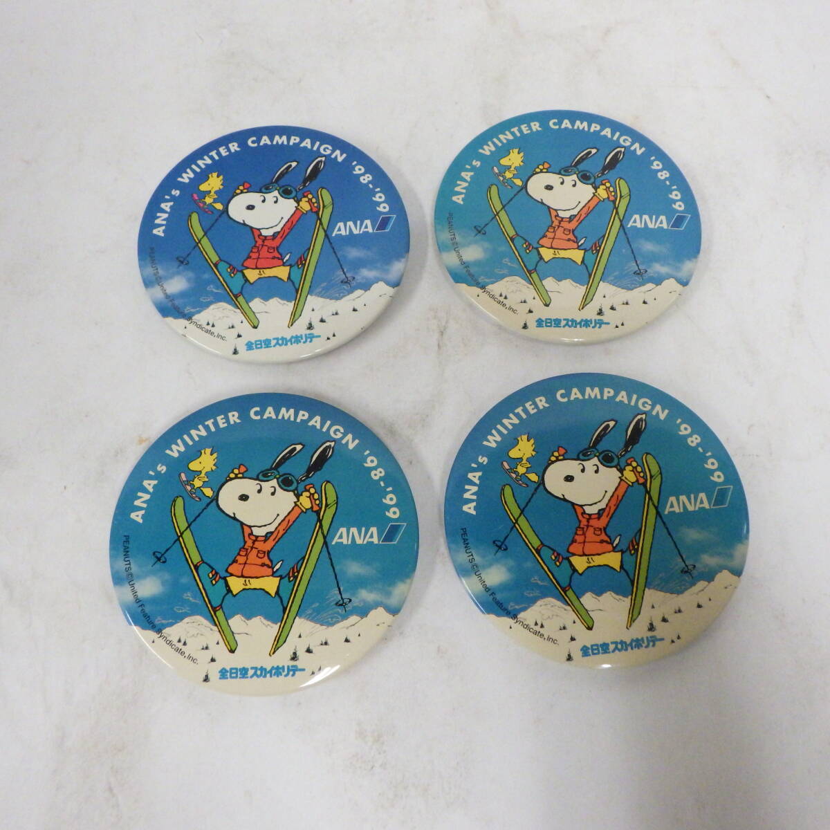 > 1998-1999年 スヌーピーANA CAMPING 缶バッジ スカイホリデー PEANUTS ピーナッツ SNOOPY ピンズ 全日空 キャラクター 飛行機 スキー