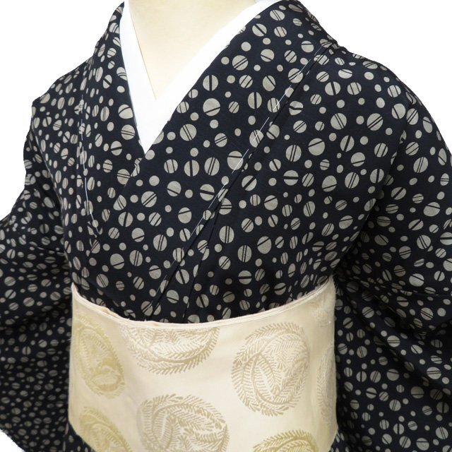 - 紬地 着物 未使用 正絹 袷 カジュアル 黒色 薄い柳茶色 身丈170.5cm 裄70.5cm L トール きもの北條 A1112-3