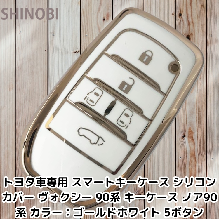 > トヨタ車専用 スマートキーケース シリコンカバー ヴォクシー (VOXY) 90系 キーケース ノア(NOAH) 90系 カラー:ゴールドホワイト 5ボタン