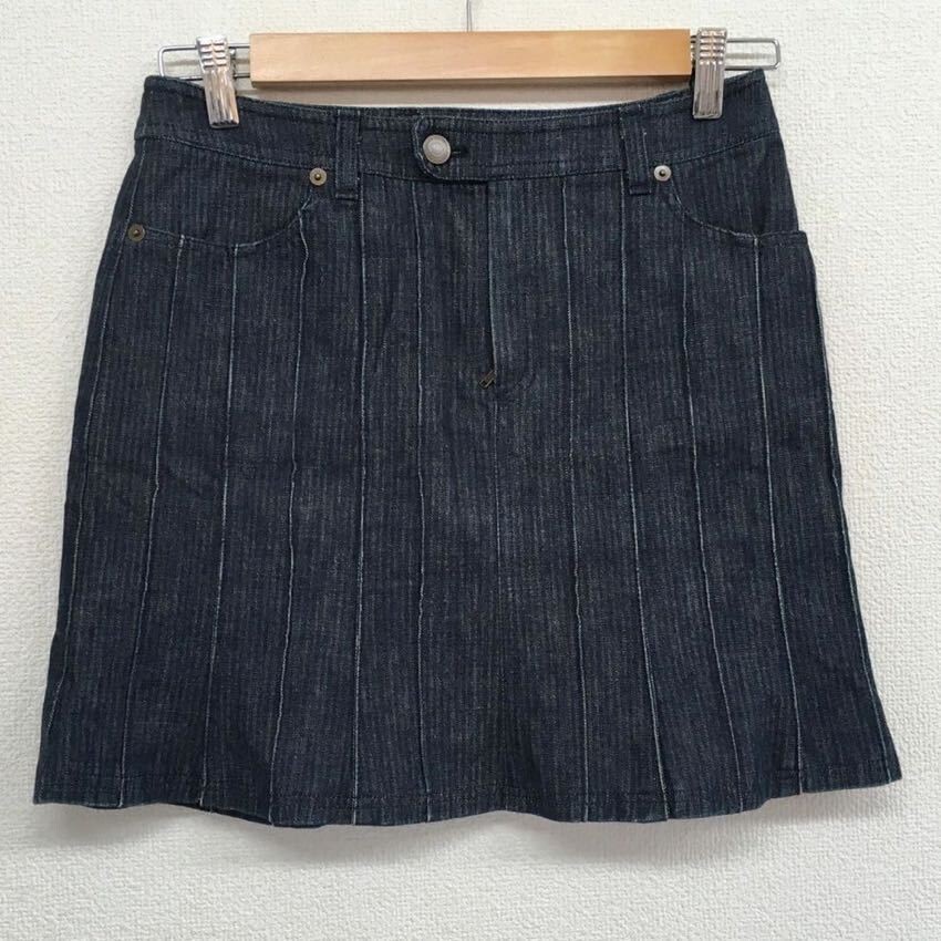 > 【美品】 GRACE CONTINENTAL グレースコンチネンタル ストライプ 台形スカート ネイビー 38号 レディース Mサイズ相当 日本製