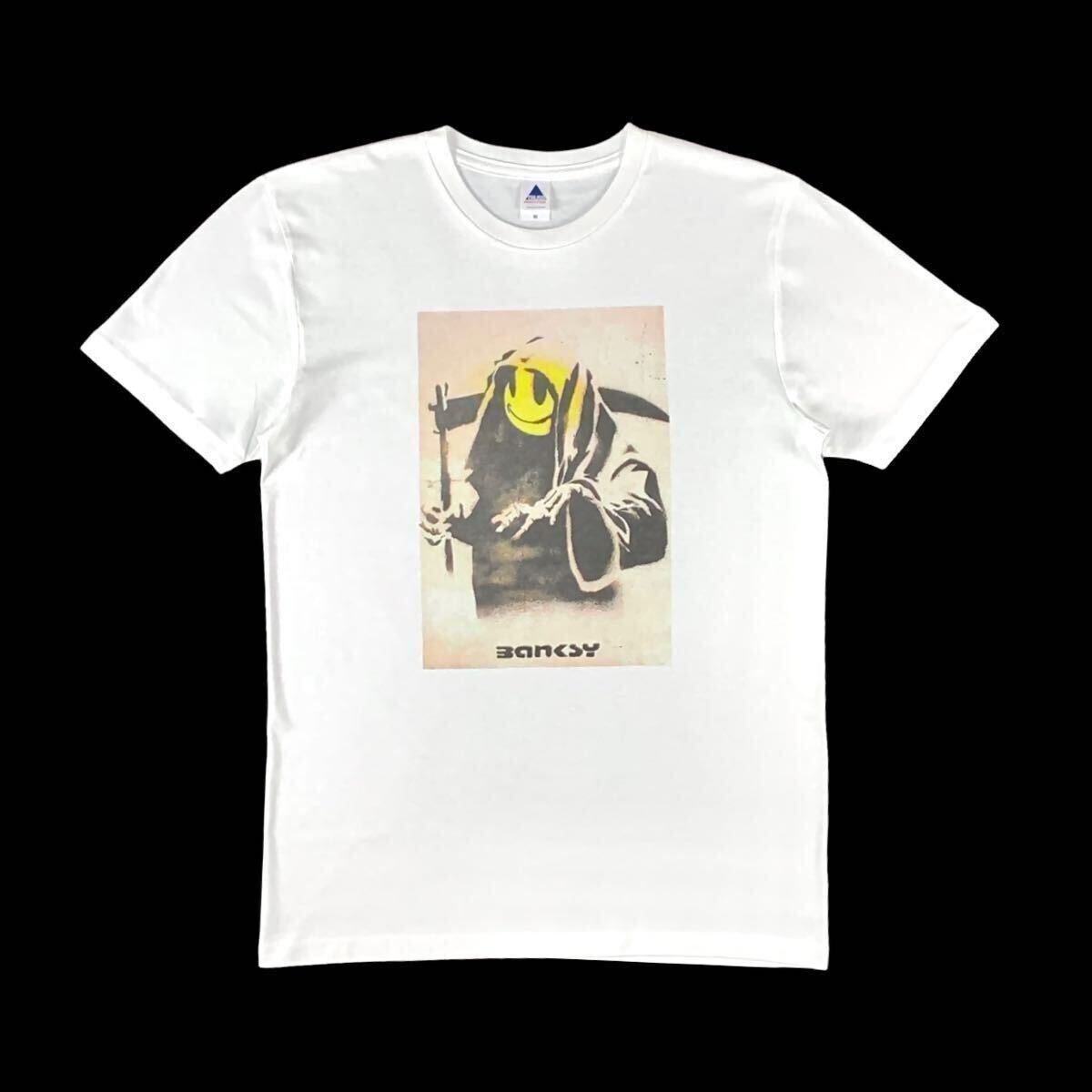 > 新品 BANKSY バンクシー Wrong War スマイリー ニコちゃん 死神 社会風刺 ストリート グラフィティ アート Tシャツ オーバーサイズ XL(LL)