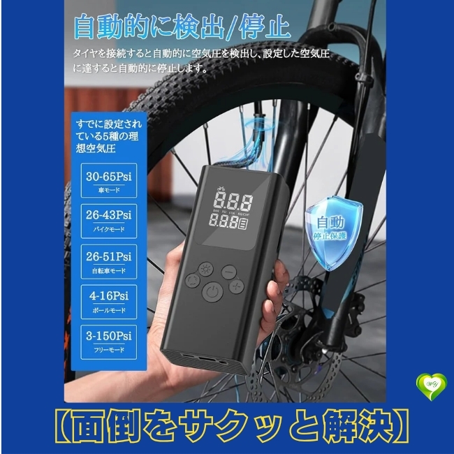 - 【面倒をサクッと解決】自転車電動空気入れ 6000mAh コードレス エアコンプレッサー 仏/英/米式バルブ対応 Type-C充電 便利 快適