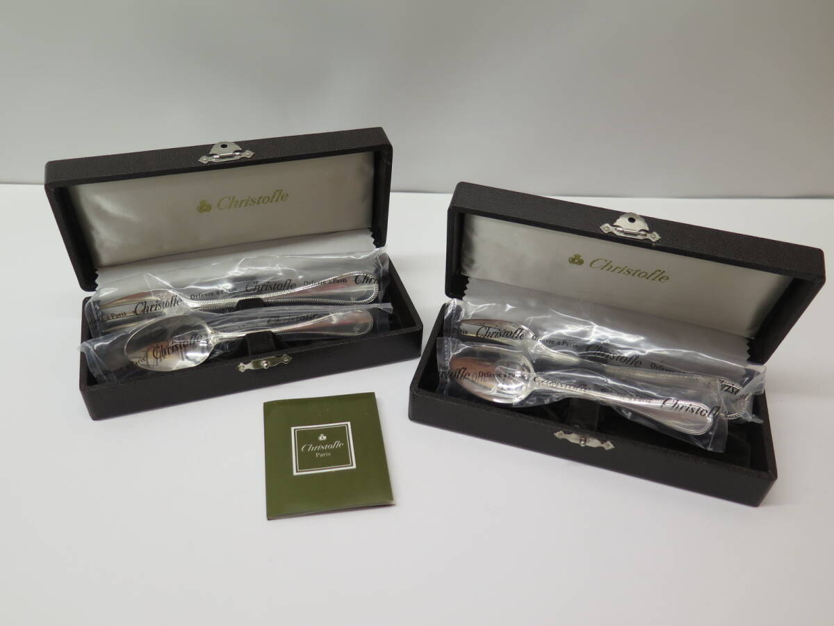 未開封保管品 未使用 Christofle クリストフル・パール シルバープレート コーヒースプーンとケーキフォクのセット 2箱まとめて