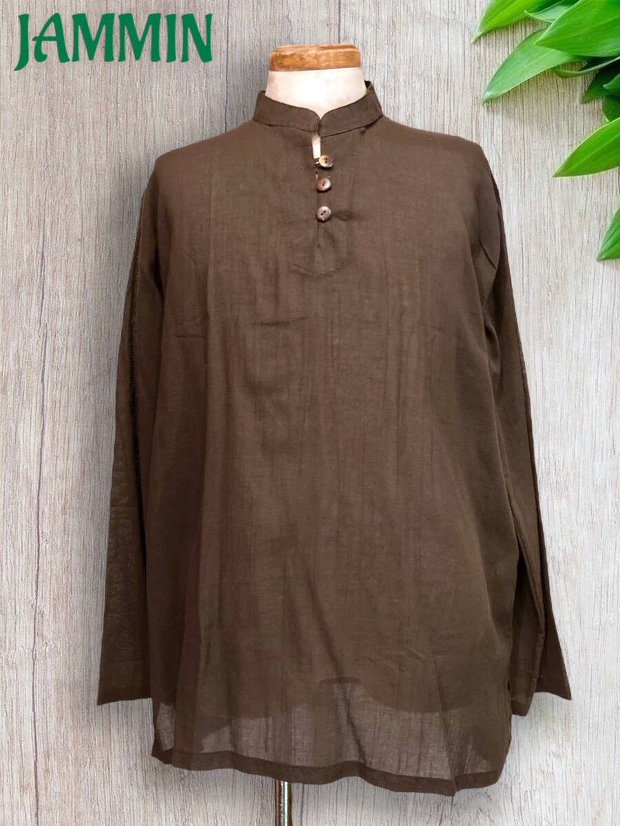 - ココナッツボタン付きクルタ ブラウン エスニック アジアン アフリカン