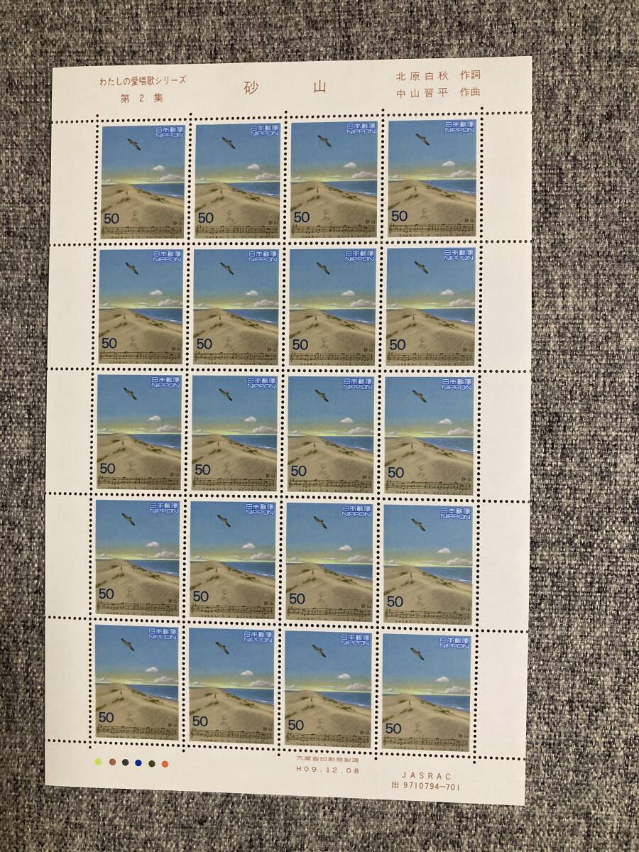 - ★未使用 わたしの愛唱歌シリーズ 第2集 砂山 海岸 鳥 作詞 北原白秋 作曲 中山晋平 原画 國領經郎 1997年 平成9年 切手シート 50円 20枚