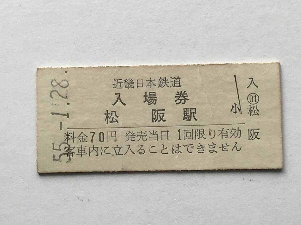 - 昔の切符 きっぷ 硬券 近畿日本鉄道 松阪駅 入場券 料金70円 サイズ:約2.5×約5.8㎝ S55 HF5428 くるり岸田繁