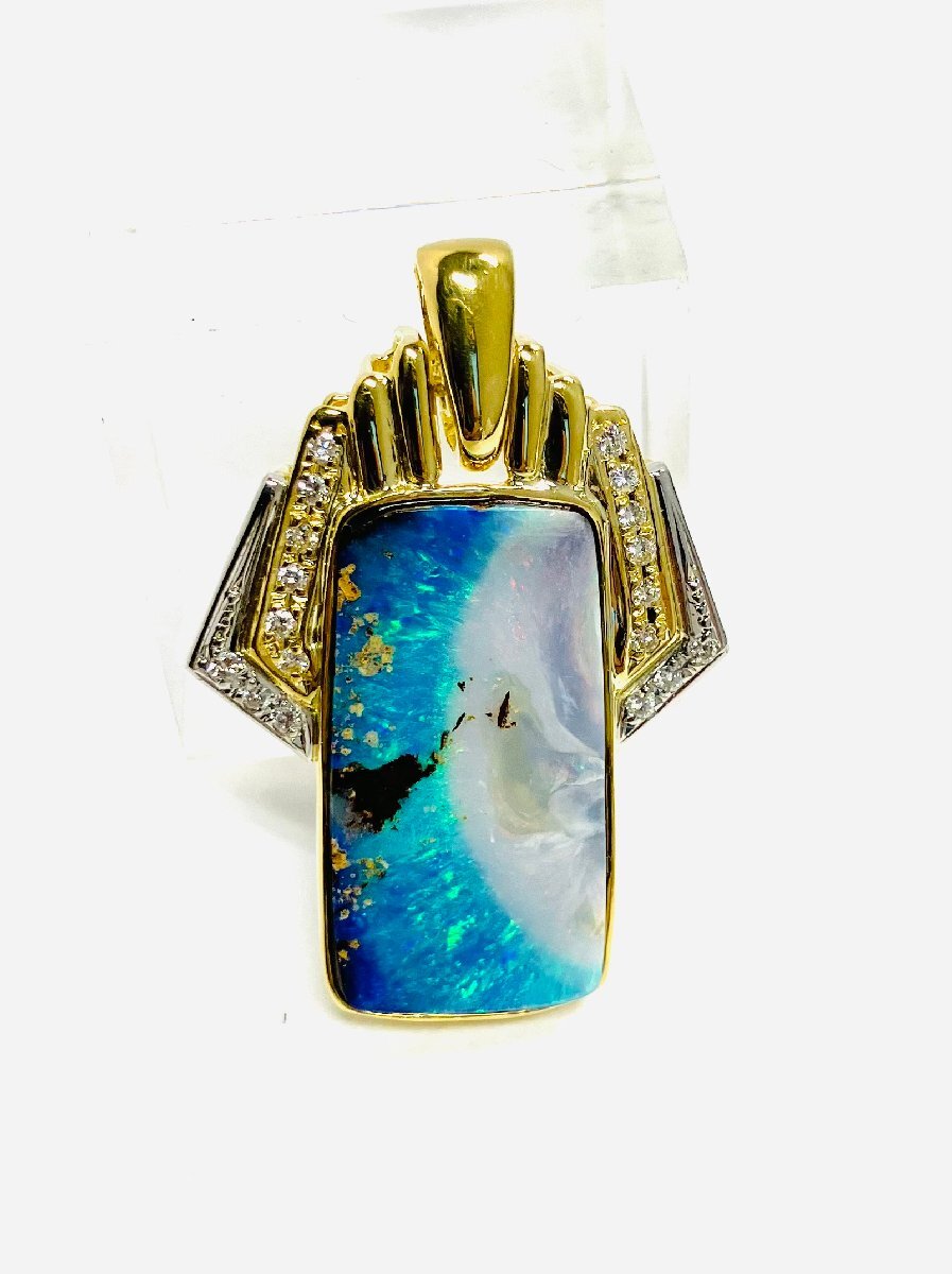 - qoj.ZOK01 K18/PT900 天然ボルダーオパール ペンダントヘッド B20.66 D0.24ct