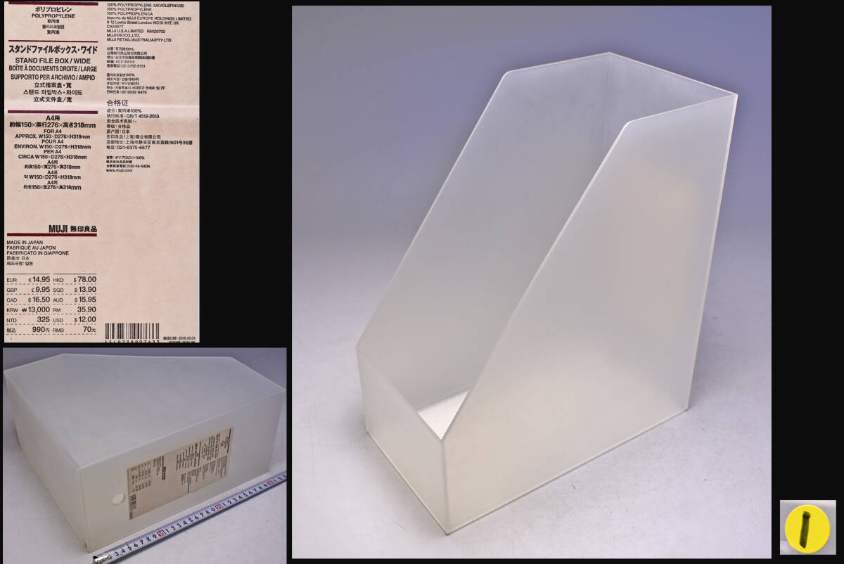> MUJI 無印良品 ★ スタンドファイルボックス ワイド ① ★ A4用 ★ ポリプロピレン ★ 定価900円 ★ ブックスタンド ★ 中古品 ★