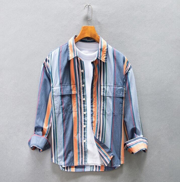 - ☆新品メンズシャツ 長袖シャツ カジュアルシャツ ストライブ柄 切替 配色 カッコイイ 個性 紳士服 心地良し 通気性 グレー サイズ選択可