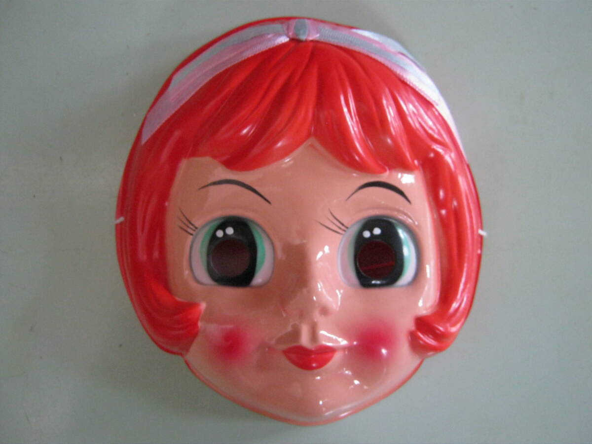 - 【キャラクター不明 ショートヘアーのオレンジ色の髪で頭の上にリボンを付けた女の子 (お面) お祭り縁日屋台・駄菓子屋:1970年代】