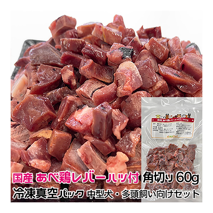 - 犬用・猫用 国産 あべ鶏レバーハツ付 600g 角切り60g×10パック 冷凍真空パック【クール便発送】犬 猫 手作りごはん