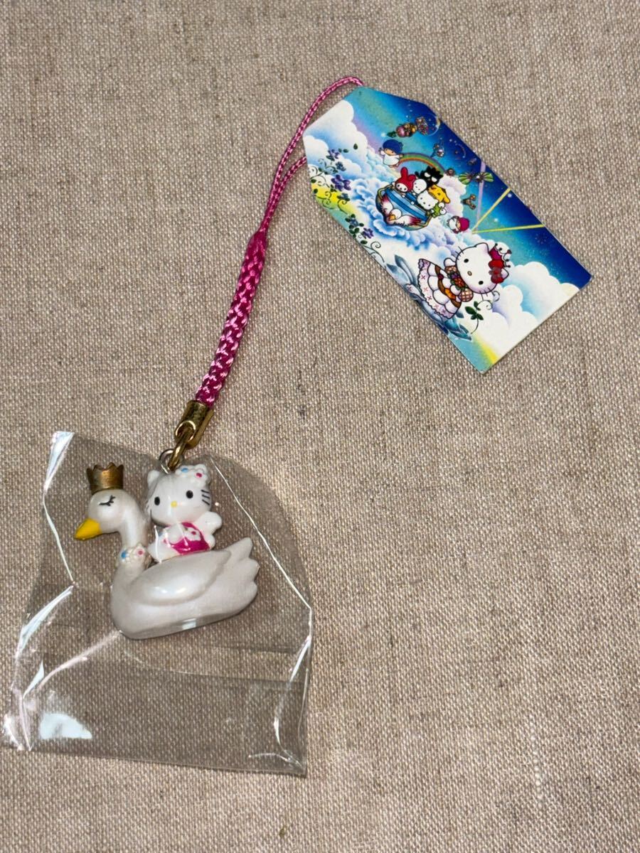 - サンリオピューロランドでパレードの後に配られた、スワンハローキティ根付け