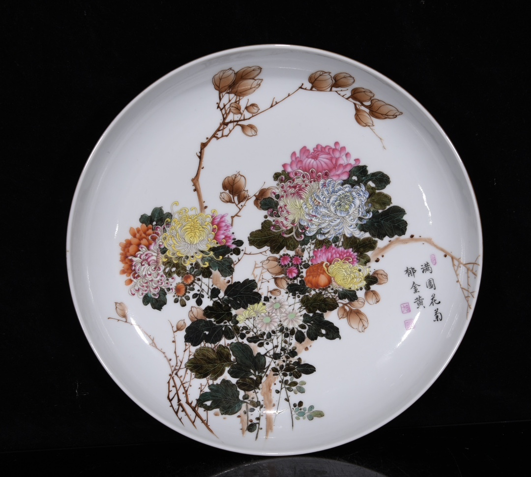 - ◆旧家蔵出◆古美術 中国古玩 大清雍正年製款 粉彩 菊花紋大盤 古賞物 骨董 時代物 A06