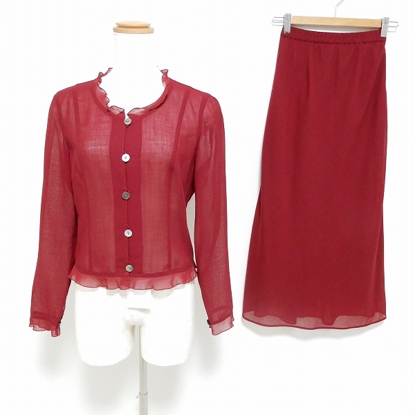 - #anc ユキコハナイ YUKIKOHANAI セットアップ ツーピース ロング スカート 10 赤 シースルー レディース [915130]