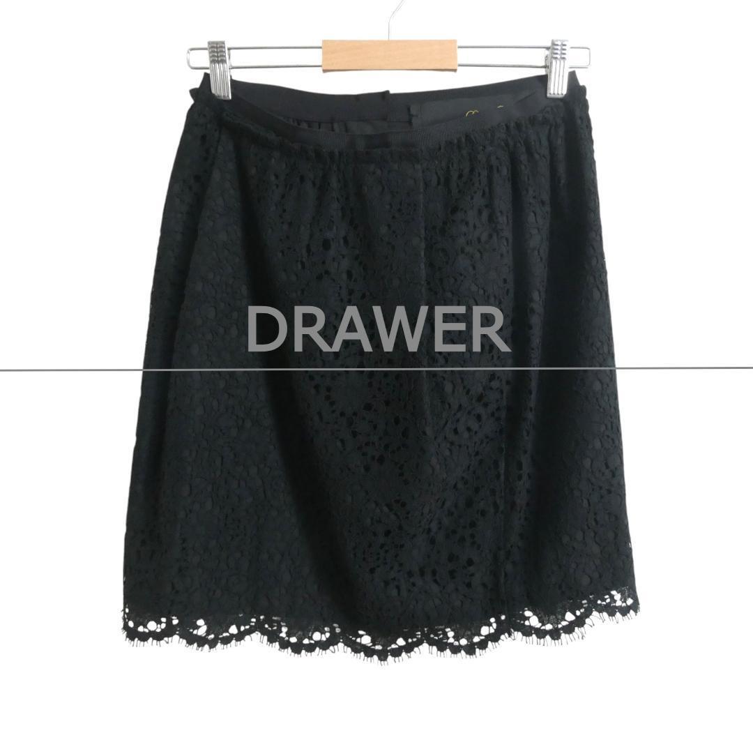 - 美品 DRAWER ドゥロワー サイズ36 レース 膝丈 台形 スカート タイトスカート 黒 ブラック