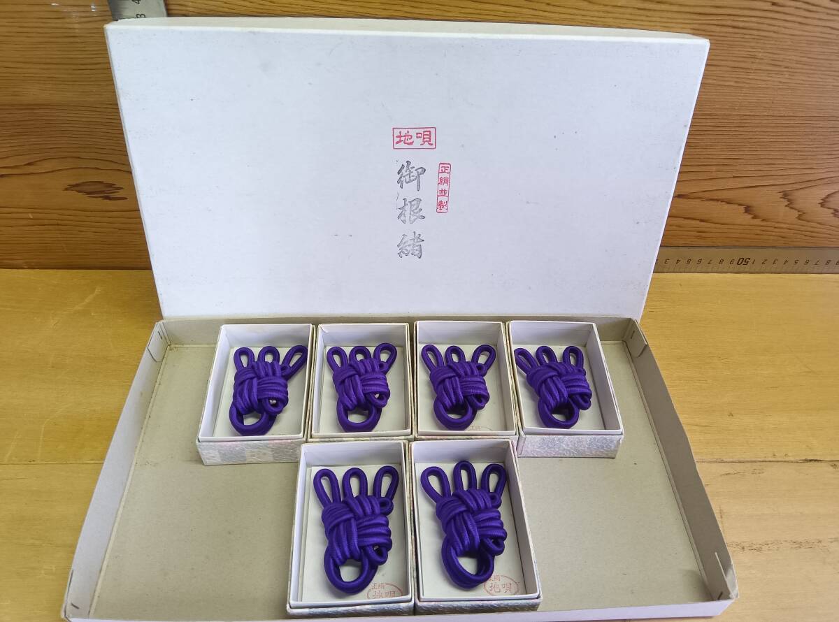 > 24111802 正絹並製 地唄 御根緒セット 紫 根緒セット 正絹 地唄 三味線 未使用品