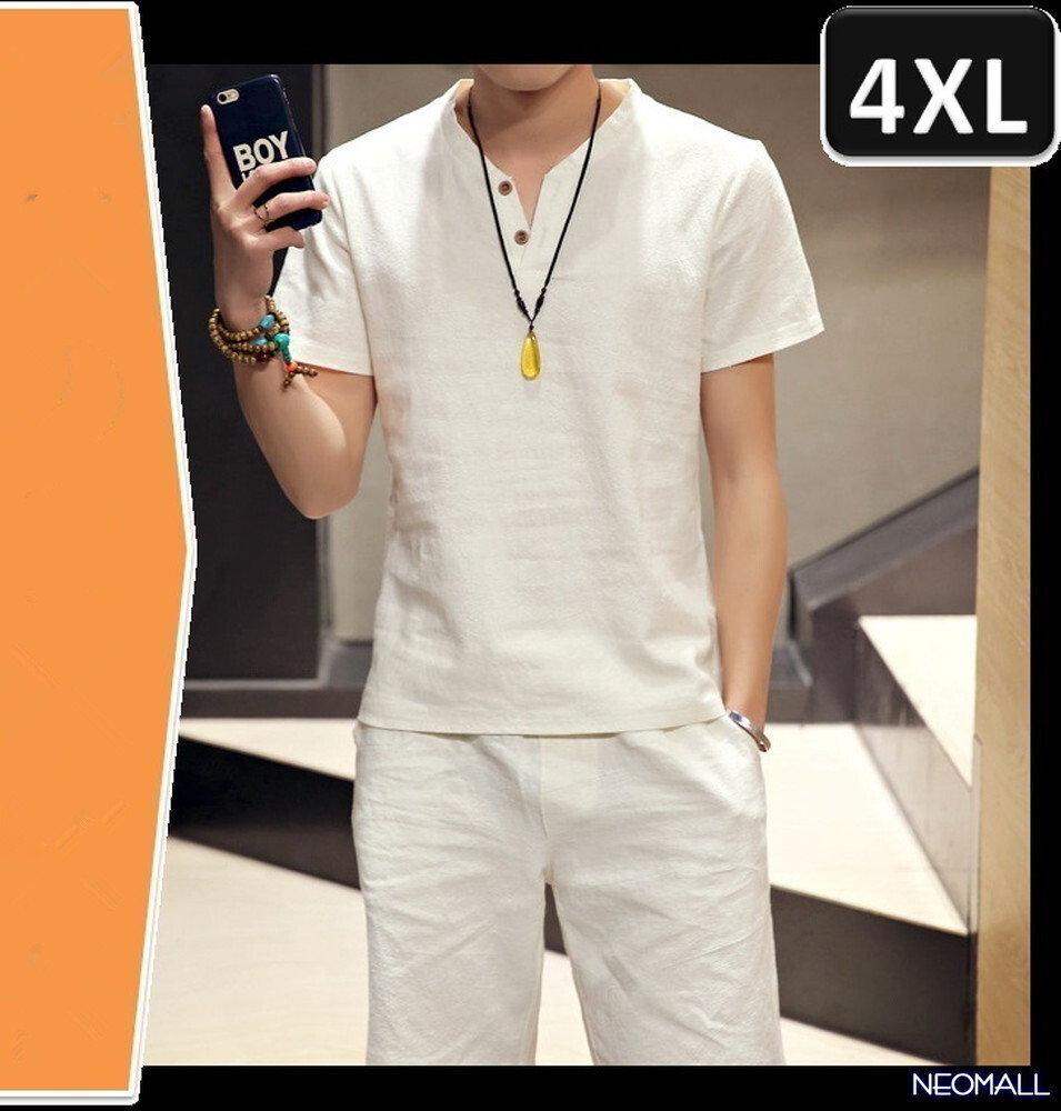 - 新品 サマーコットン ヘンリーネック セットアップ ホワイト 4XLサイズ 春 夏 部屋着 ルームウエア DJ081