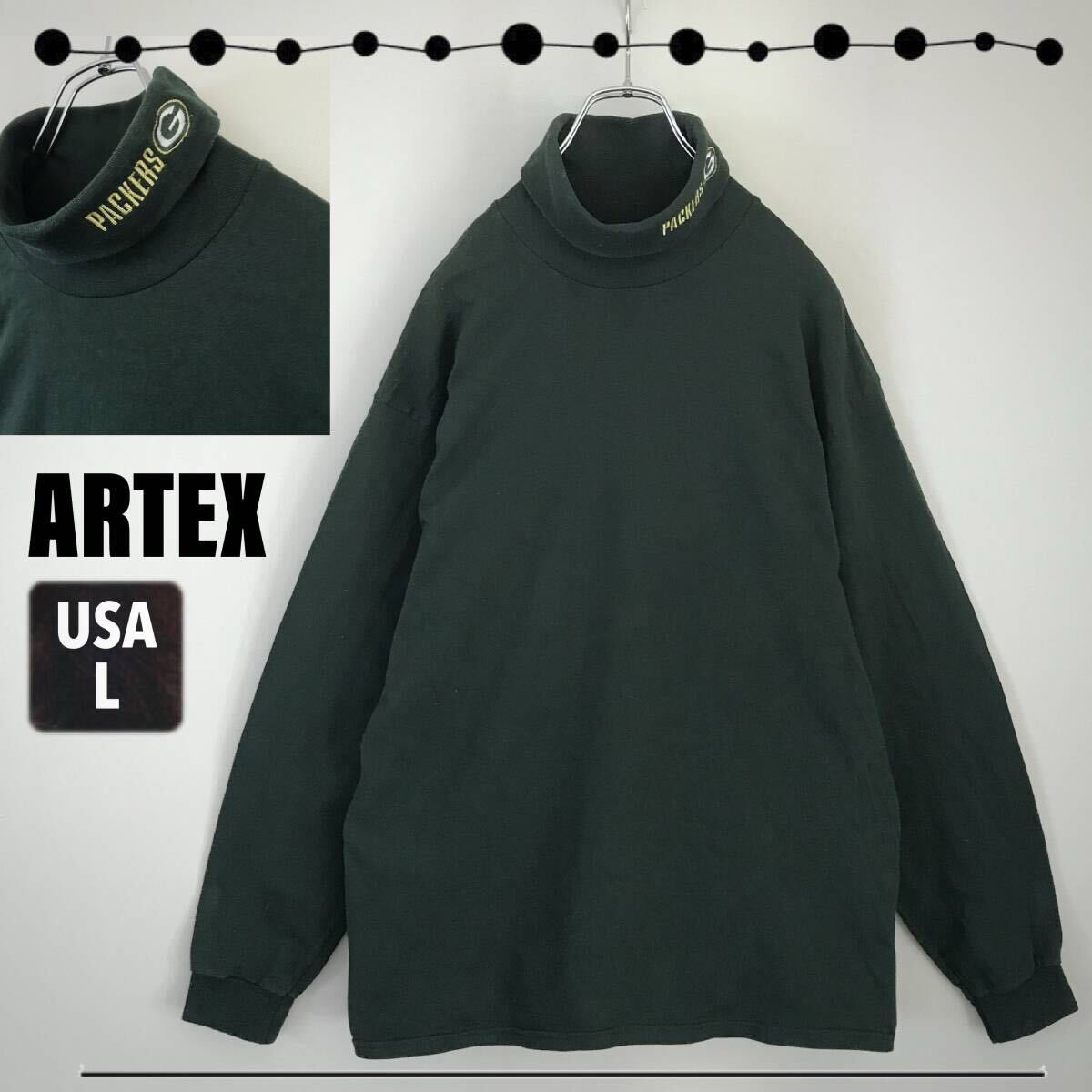 > ARTEX アルテックス★NFL PACKERS パッカーズロゴ刺繍★タートルネックTシャツ★USAメンズL 2309S130