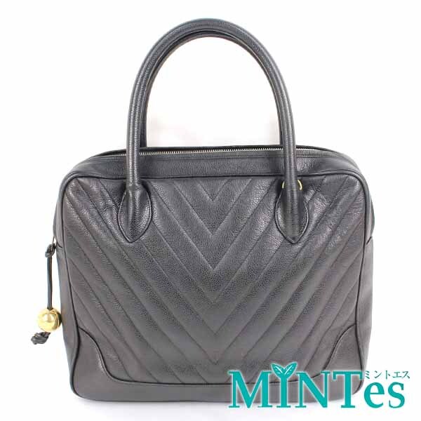 > Chanel シャネル キャビアスキン Vステッチ 2WAY ハンドバッグ ブラック キャビアスキン ショルダーバッグ レディース 女性 通勤通学