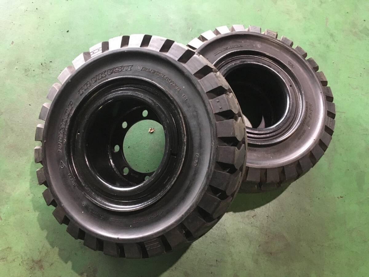 > s916-4-11☆18×7-8 フォークリフト(ノーパンク)ダンロップ トラクッシュ ES バッテリー車用2本 未使用品 ホイール付き(リング式)k60