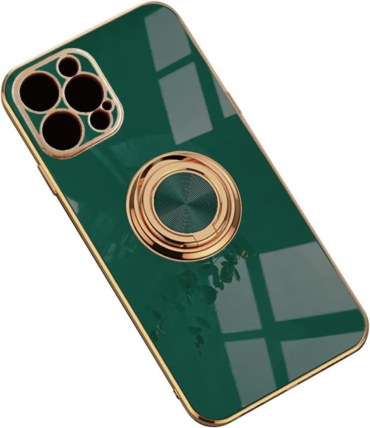 - iPhone 12 Pro 用 ケース リング付き 360度回転 角度調整 スタンド機能 カメラ保護 耐衝撃 車載ホルダー対応 薄型 軽量 ダークグリーン