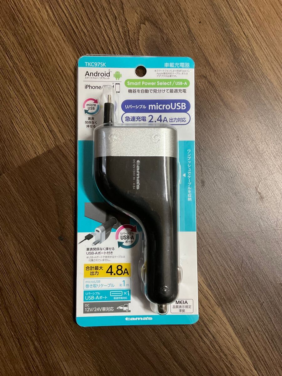 > 多摩電子工業 TKC97SK マイクロUSB車載充電器 未使用品 12V 24V 対応 2.4A ①