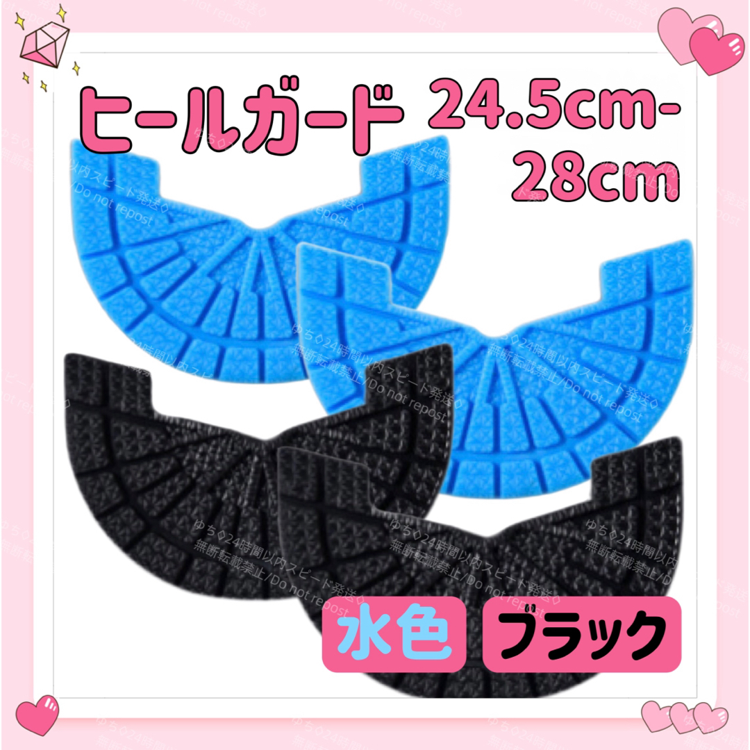 - ヒールガード ソールガード 4枚セット 2足分 スニーカー プロテクター 保護 補修 24.5cm-28cm ブラック 水色