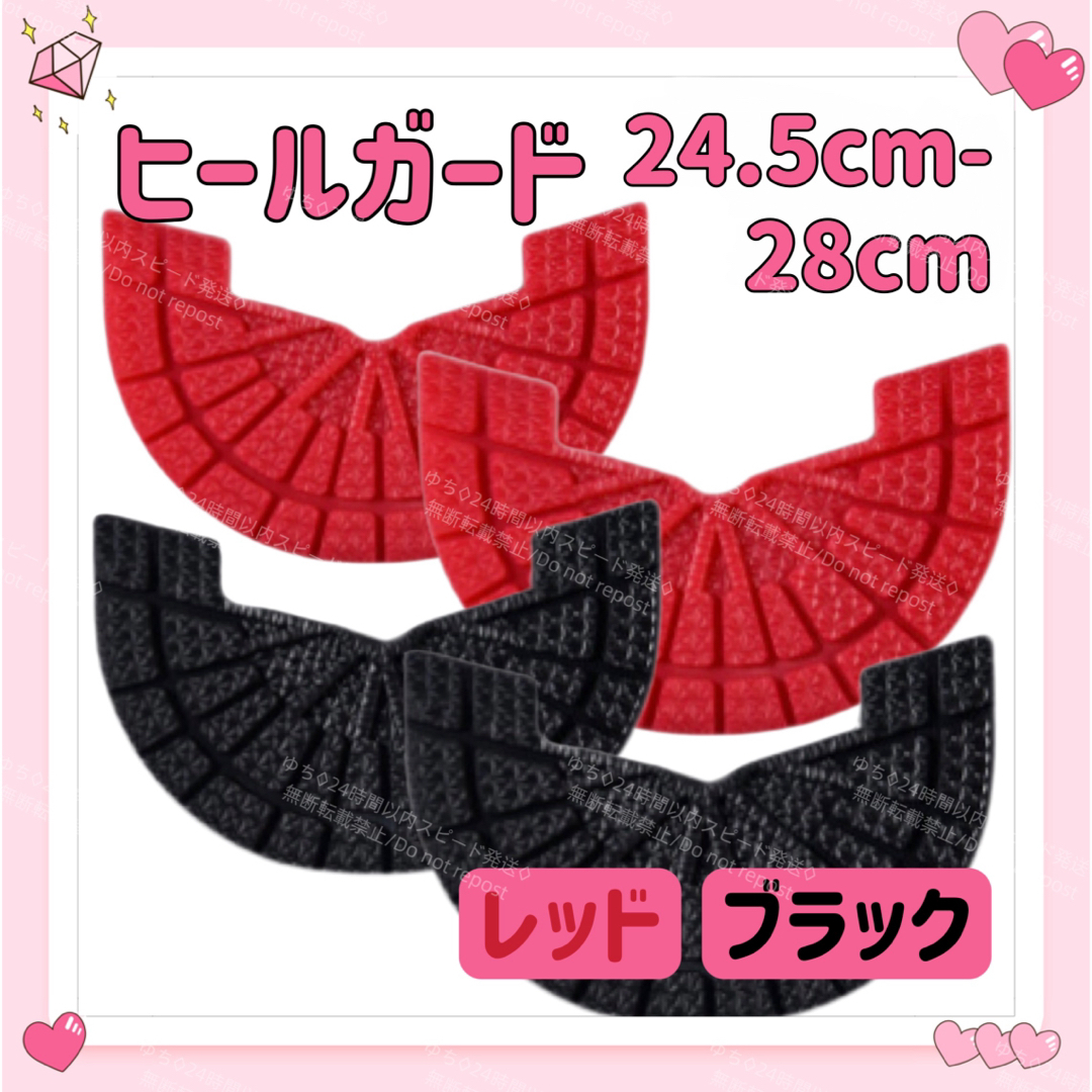 - ヒールガード ソールガード 4枚セット 2足分 スニーカー プロテクター 保護 補修 24.5cm-28cm ブラック レッド