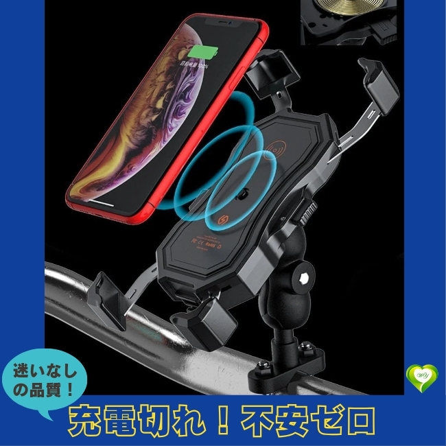 - 【充電切れ!不安ゼロ】 スマホホルダー ワイヤレス 充電タイプ E-FINDS QI マウント 防水 クイックホールド 12V/24V兼用 便利 高機能