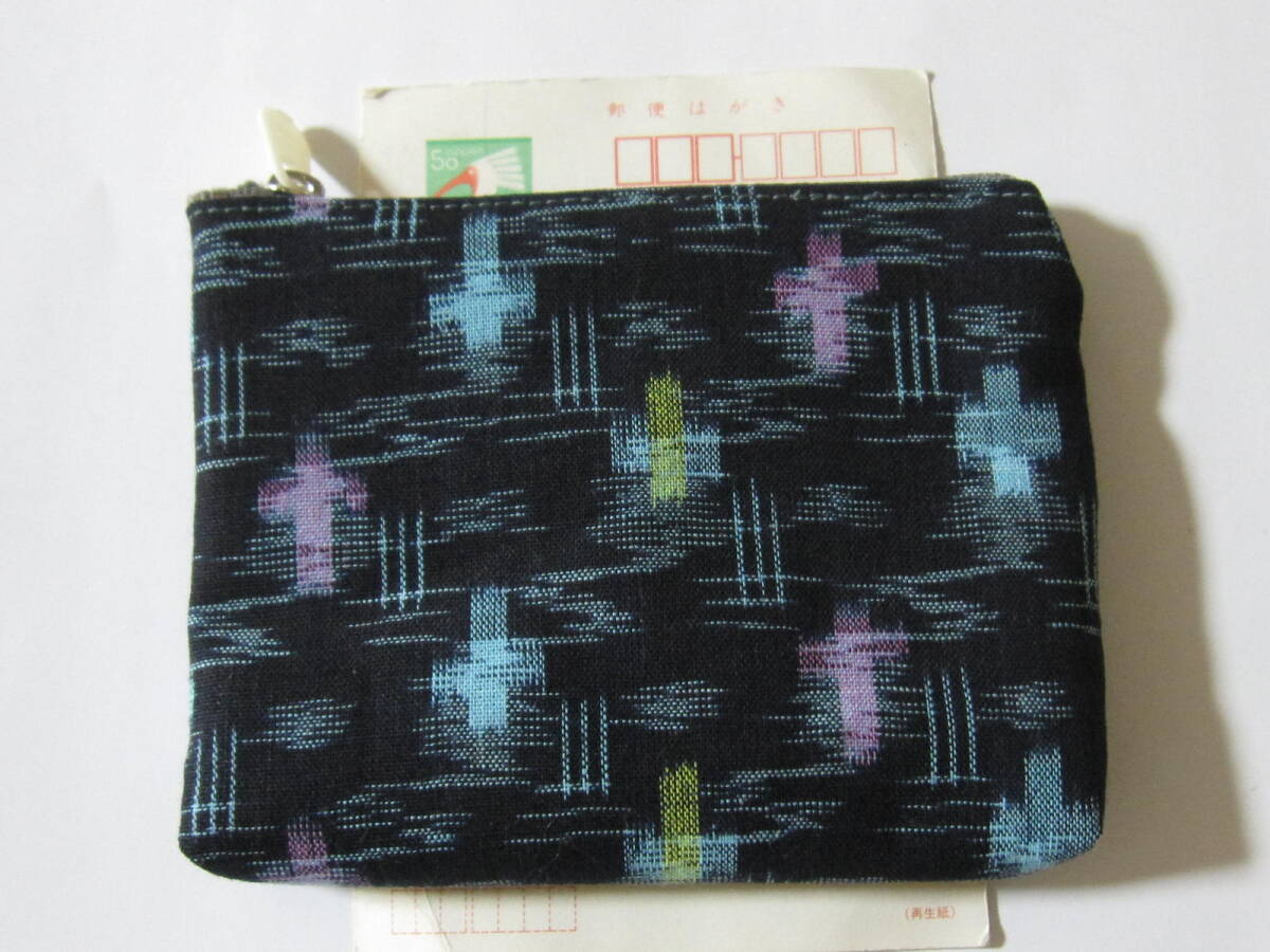 > 手作り 着物リメイク ポーチ 濃紺 模様 久留米 絣 小紋 模様 古布 レトロ ハンドメイド 格安 財布 小物 充電器 男女 兼用 秋 可愛い 祝い