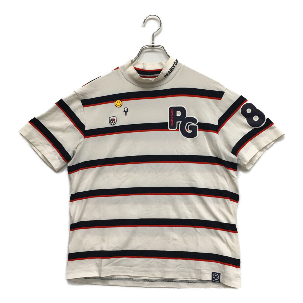 > coco 中古【値下げ】 パーリーゲイツ PEARLY GATES メンズ 半袖シャツ 6(LL) 白 モックネック ボーダー レターパックプラス発送可 95117