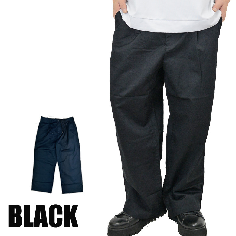 - ツイル素材 チノ イージー ワイドパンツ 15405 外出にはもちろん、部屋着にも使える万能パンツ! 新品 ブラック M