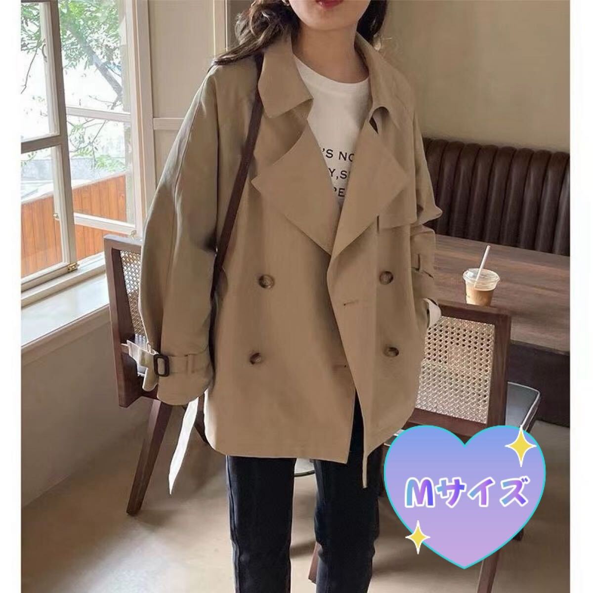 - М レディース ベージュ 秋冬トレンチコート スプリングコート ショート丈 ゆったり大きいサイズ ベージュ 通勤 大きめ 軽量 ベルト 防寒