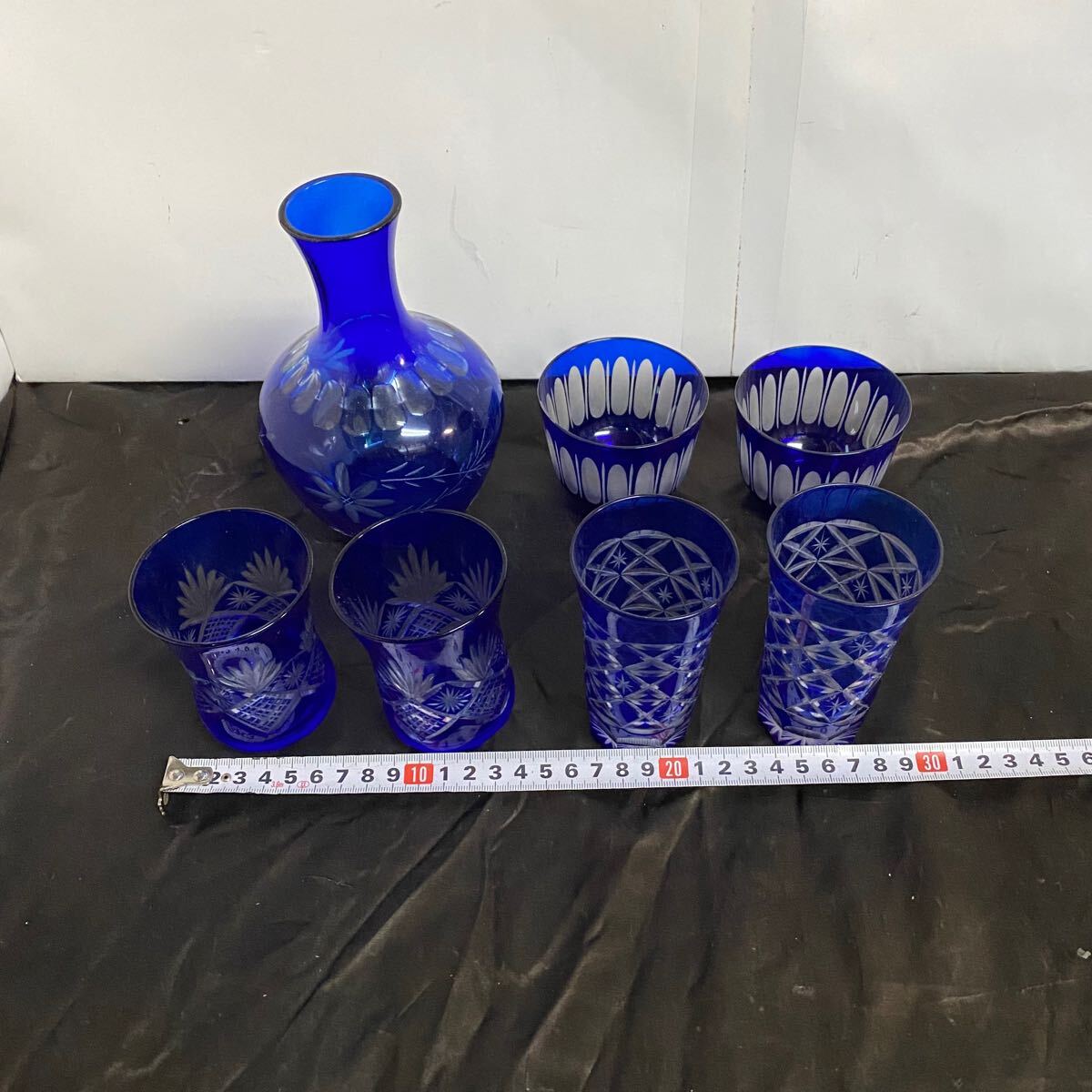 - 藍色切子 酒器 グラス 7点セット 徳利