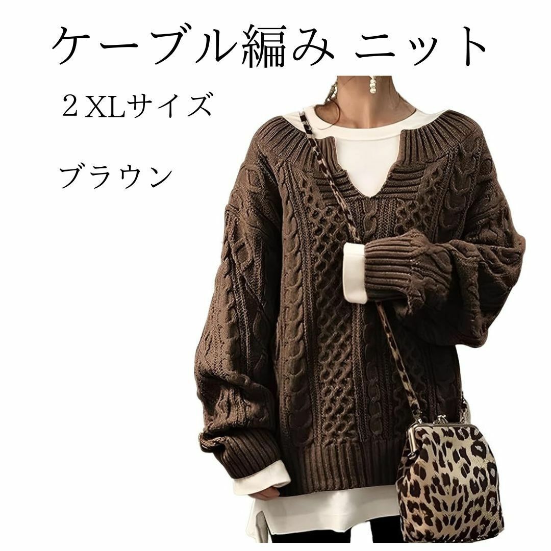 - [セカンドルーツ] ケーブル編み スキッパー Vネック ニット 2XL