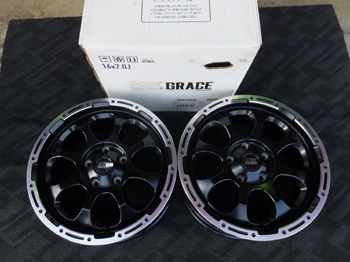- 【店頭展示品ホイール4枚セット】 マッドクロス グレイス 7.0J-16 5/114.3 +38 セミグロスブラック&リムポリッシュ 16インチ