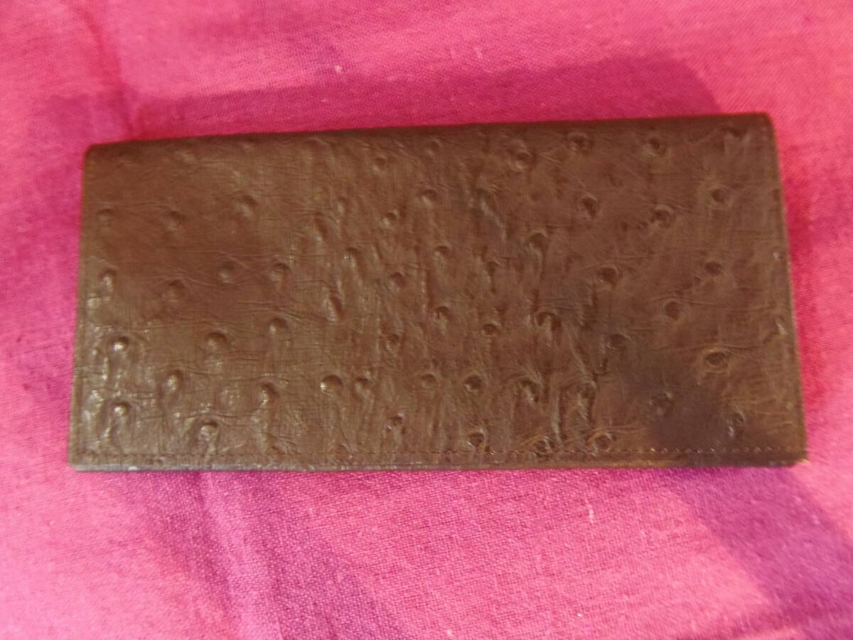 - 長財布 二つ折り札入れ オーストリッチ レザー ブラウン 大人の財布 未使用に近いです。オシャレです。送料無料28,