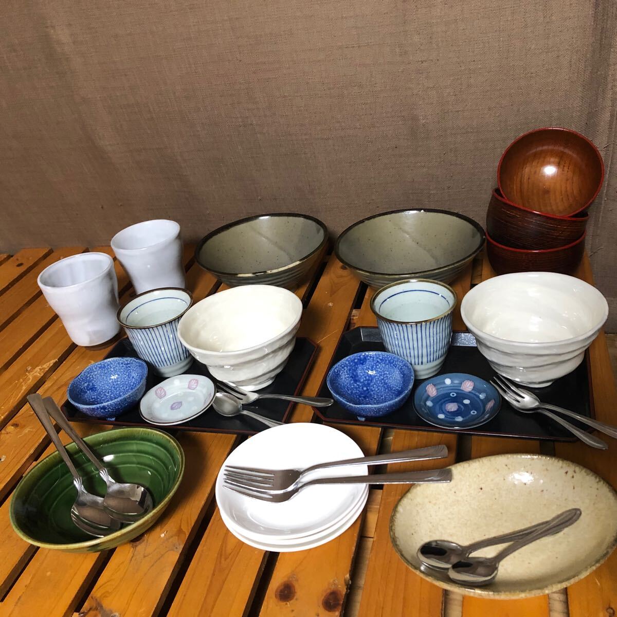 - 和食器 お得! 一人暮らし食器セット 詰め合わせ 麺どんぶり お椀 カトラリー 湯呑み マグ 茶碗 小皿 応援 エコ トレー