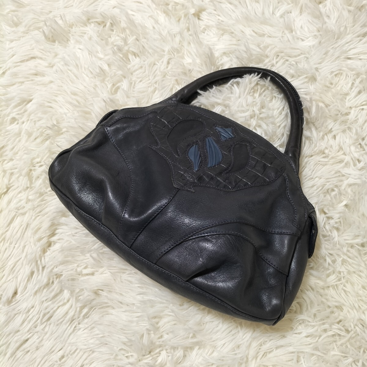 - ☆IBIZA ハンドバッグ トートバッグ セカンドバック オールレザー ネイビー 紺系 本革 イビサ イビザ レトロ レディース 手提げ 鞄 USED