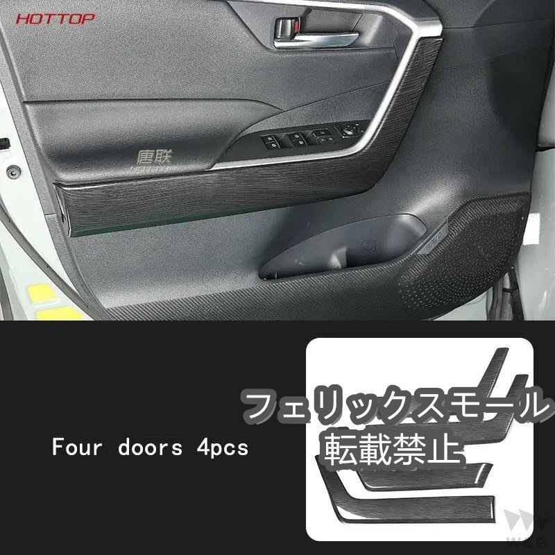 - ABS ブラックワイヤードローイングLシェイプインテリアドアパネルデコレーションストリップトリムカバー トヨタ RAV4 2019 2022 カスタムパ
