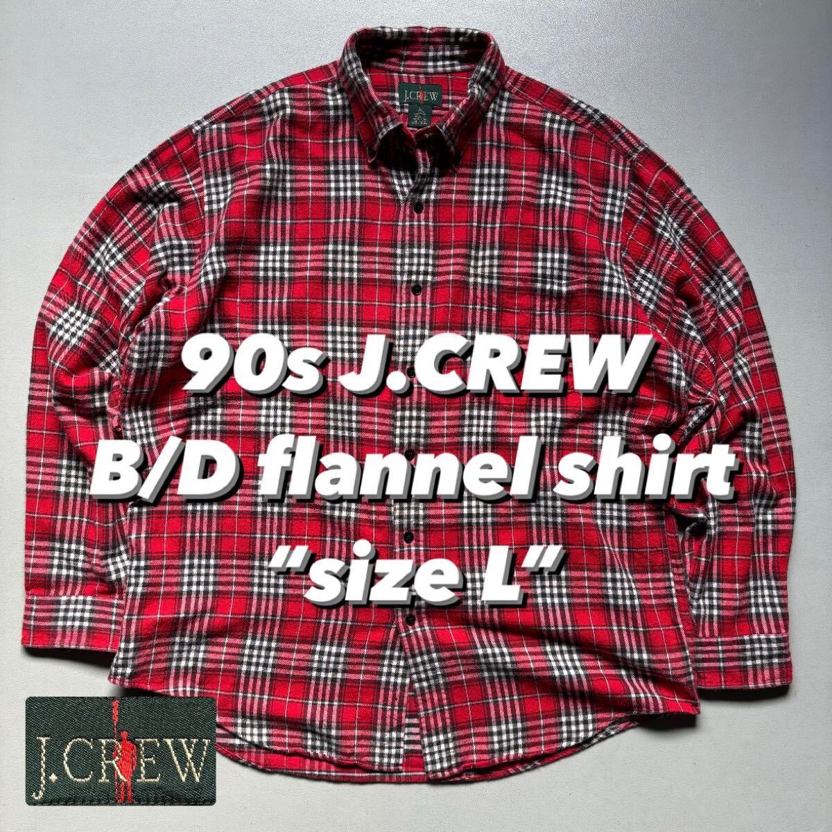 - 90s J.CREW B/D flannel shirt “size L” 90年代 ジェイクルー ボタンダウンシャツ フランネルシャツ チェック 長袖 秋冬 起毛