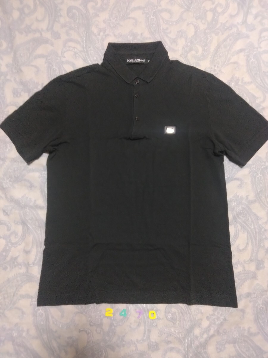 > 2470ドルチェ&ガッバーナの 左胸ロゴプレートつき半袖 黒色系ポロシャツミラノ ジャパン 北青山